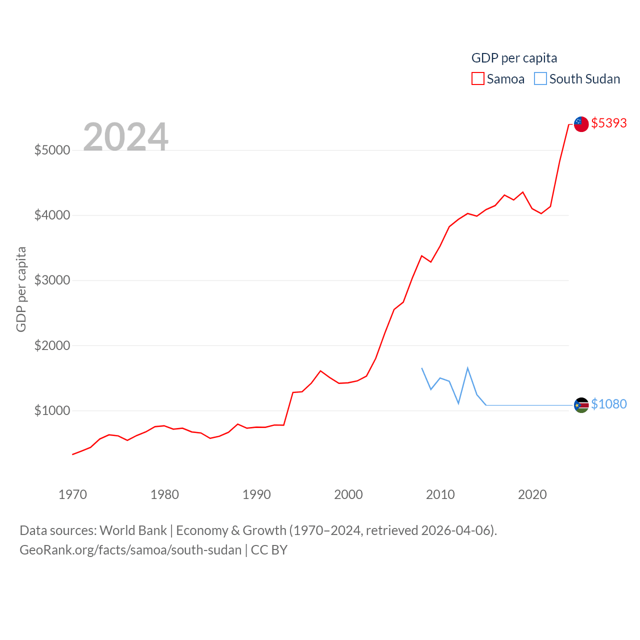 Samoa and South Sudan economies compared