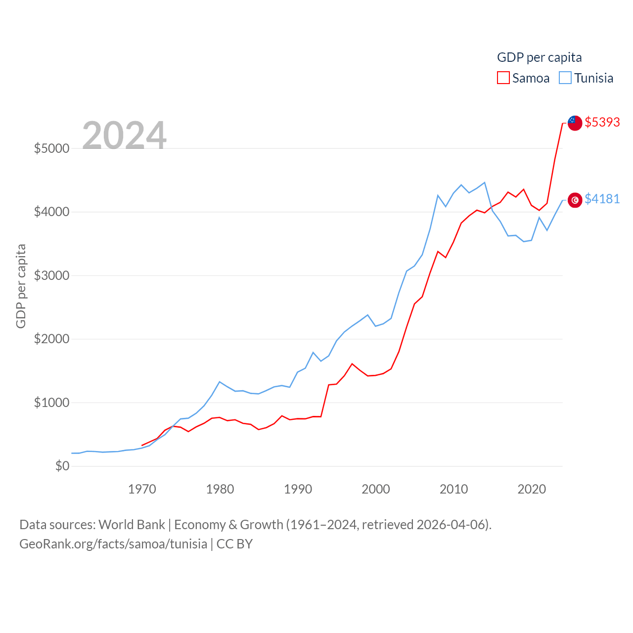 Samoa and Tunisia economies compared