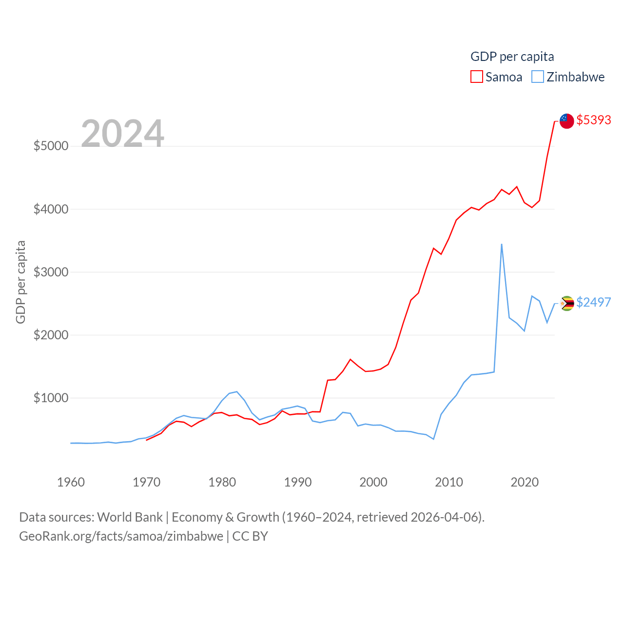 Samoa and Zimbabwe economies compared