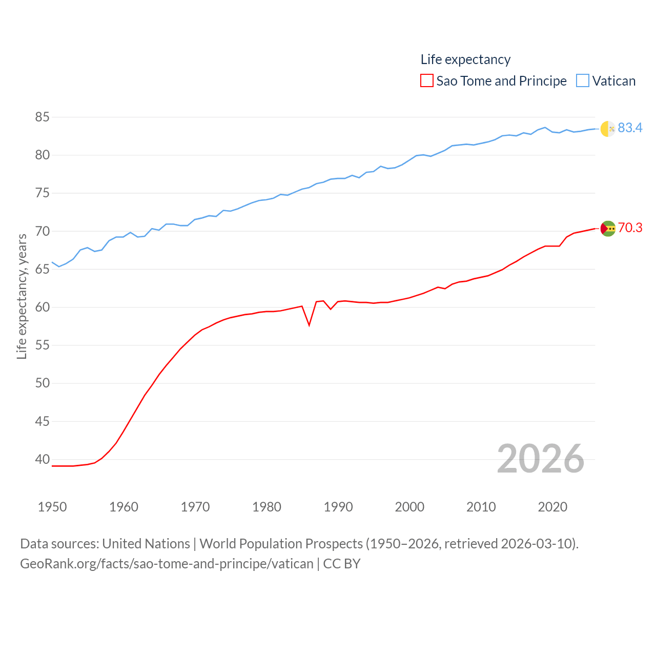 Sao Tome and Principe vs. Vatican life expectancy calculator