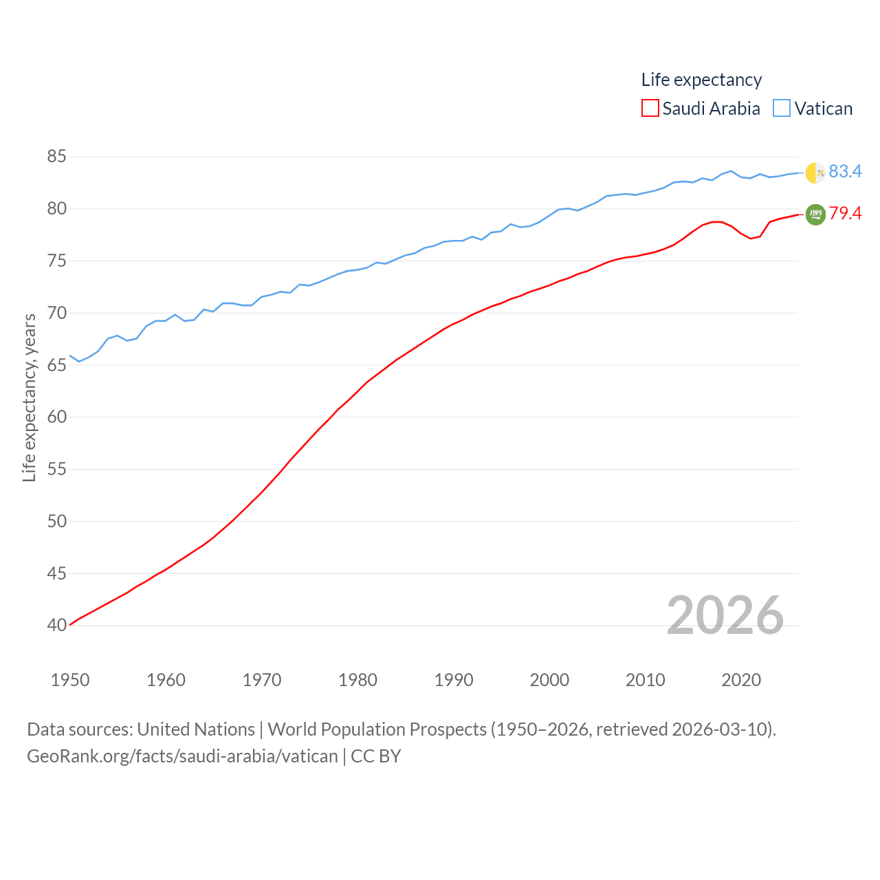 Saudi Arabia vs. Vatican life expectancy calculator