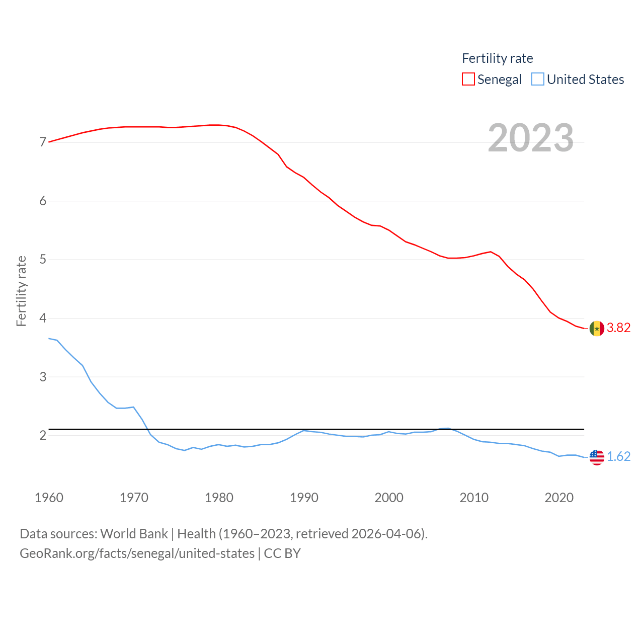 - World Bank | Health (1960–2025, retrieved 2026-04-06)