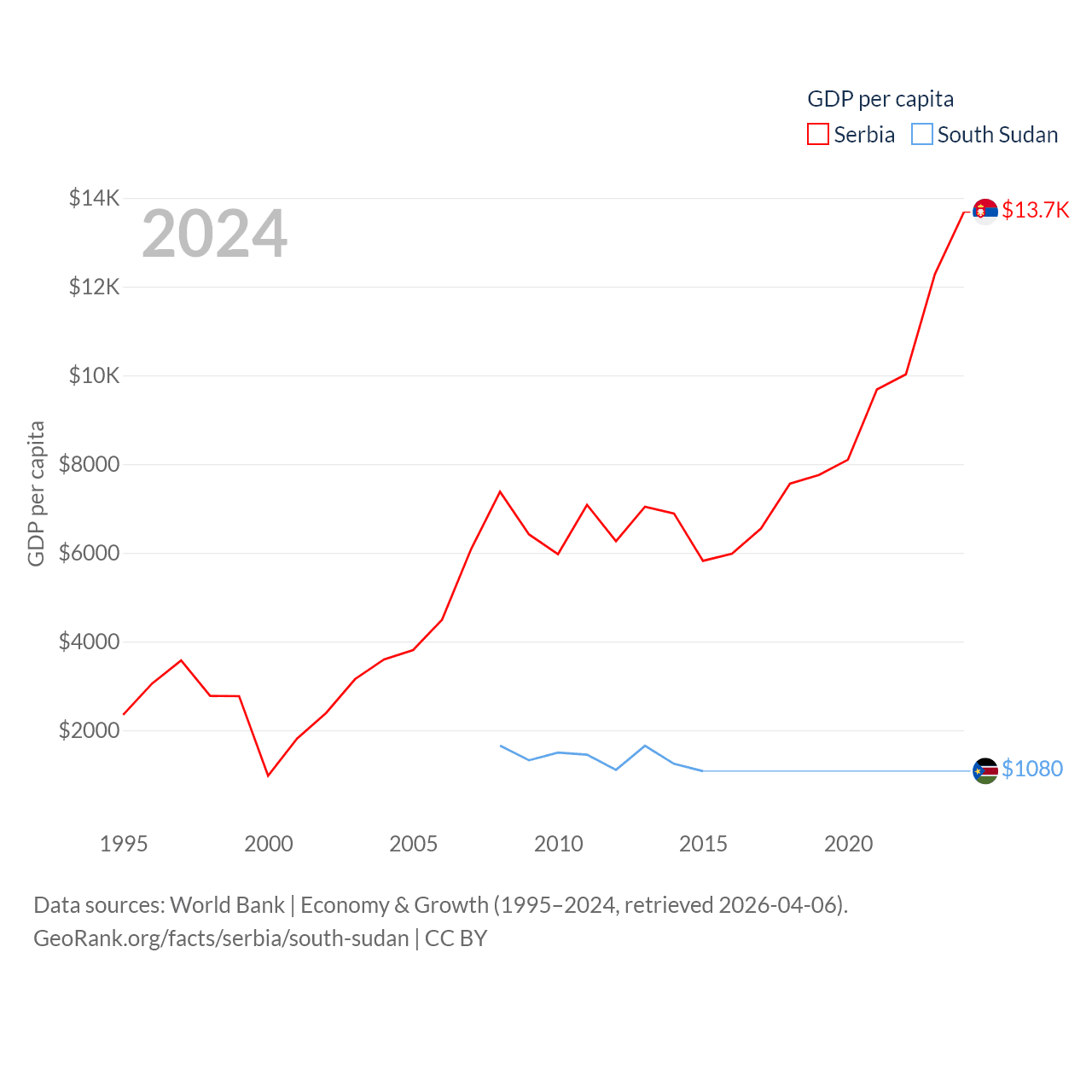 Data sources: World Bank | Economy & Growth (1995–2024, retrieved 2026-04-06).