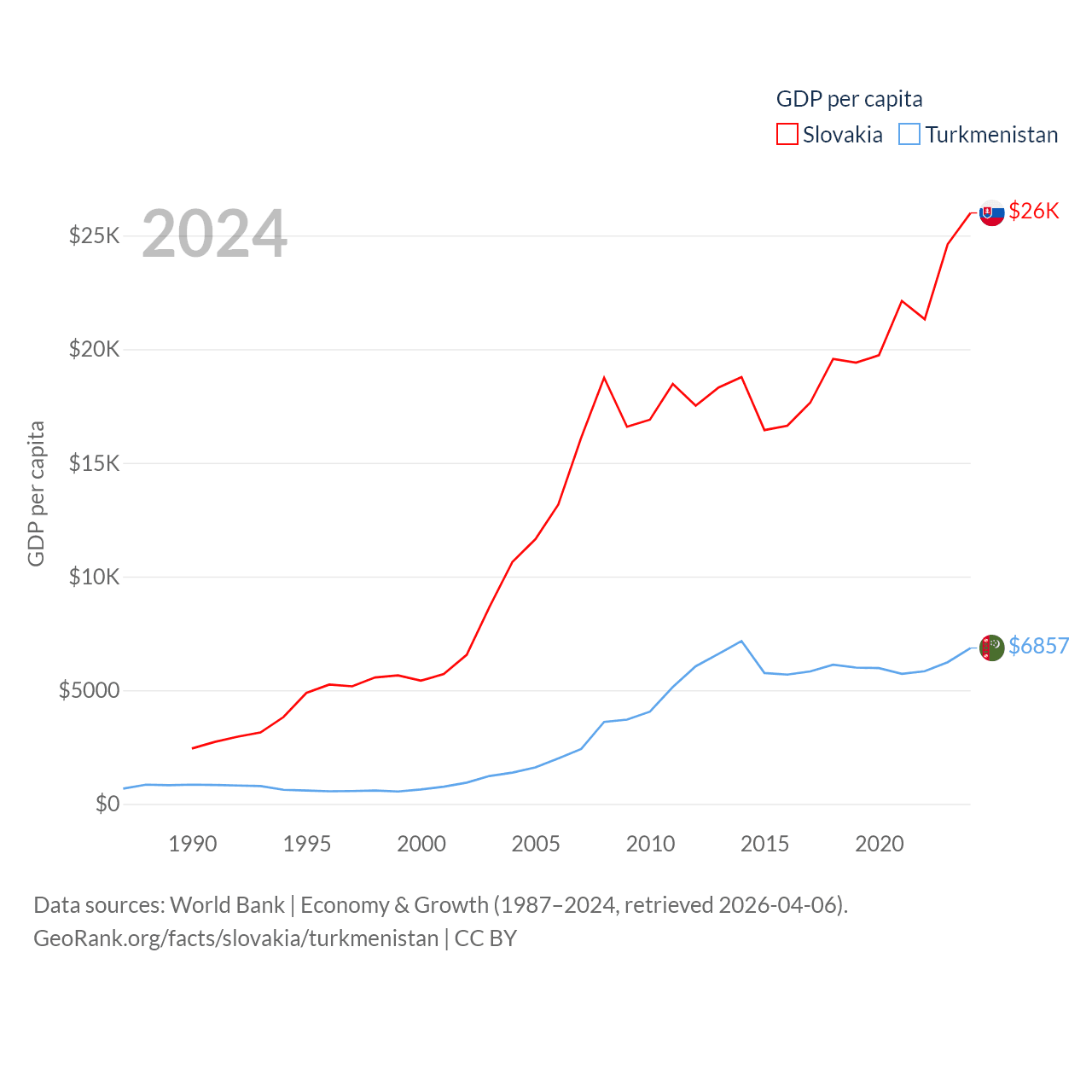 Data sources: World Bank | Economy & Growth (1987–2024, retrieved 2026-04-06).