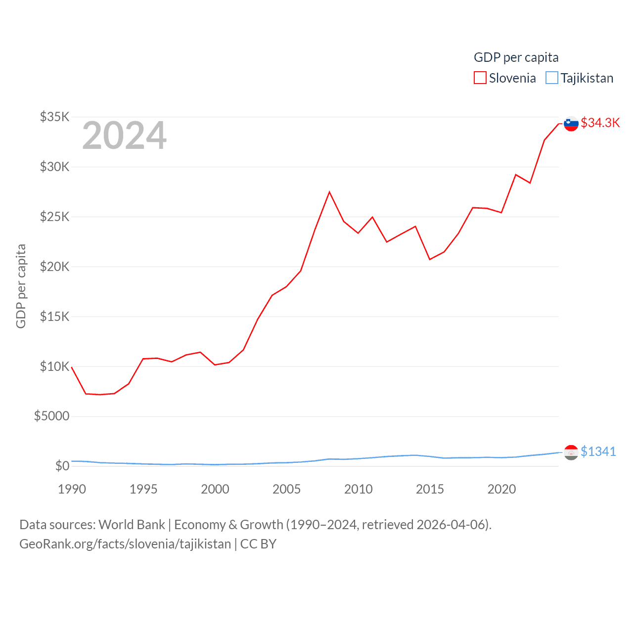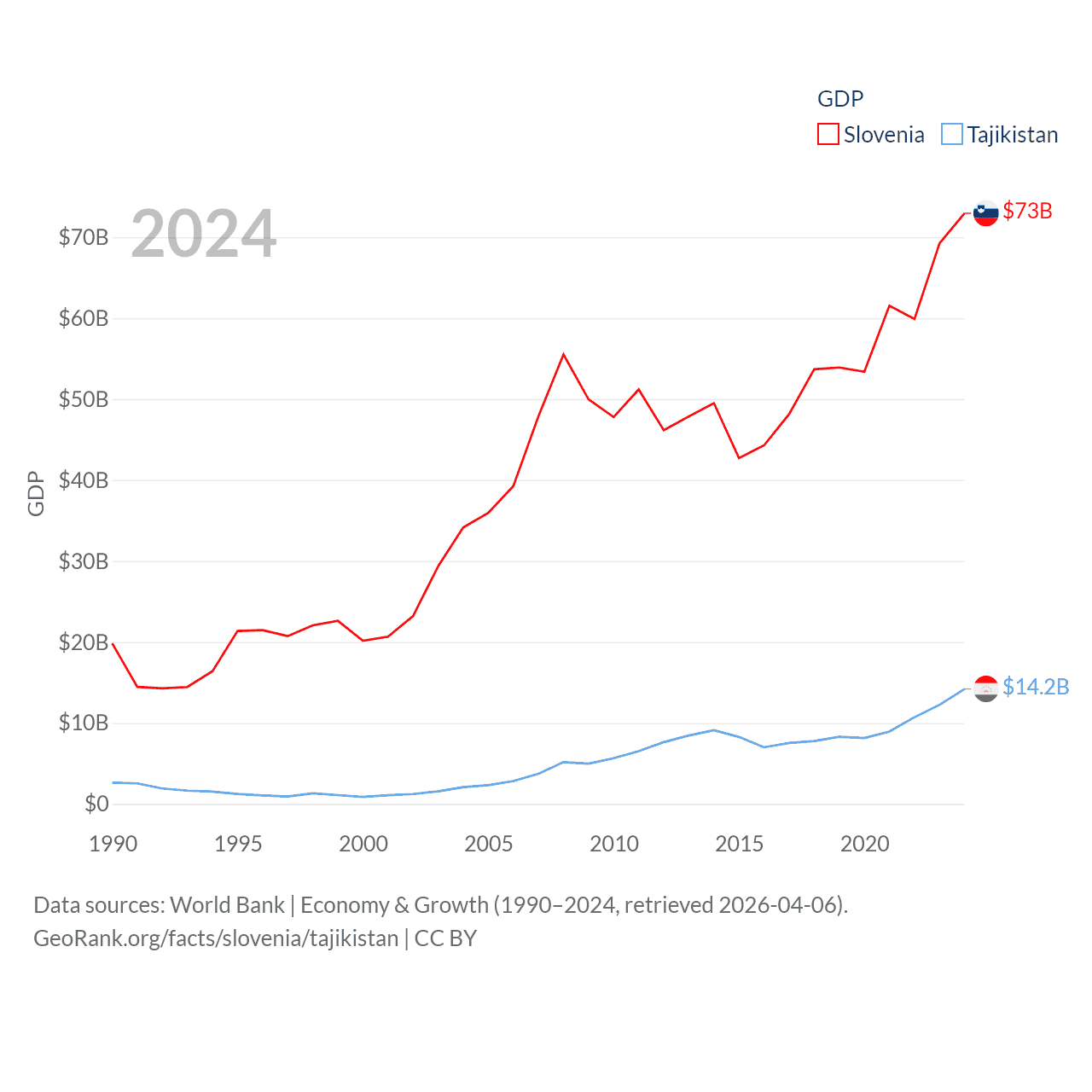 Data sources: World Bank | Economy & Growth (1990–2024, retrieved 2026-04-06).
