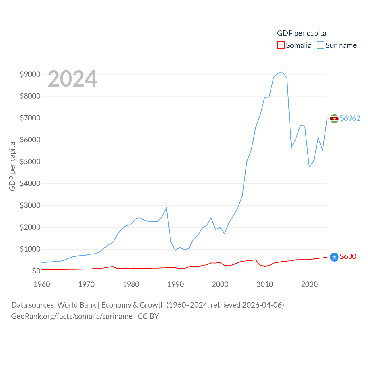 Somalia and Suriname economies compared