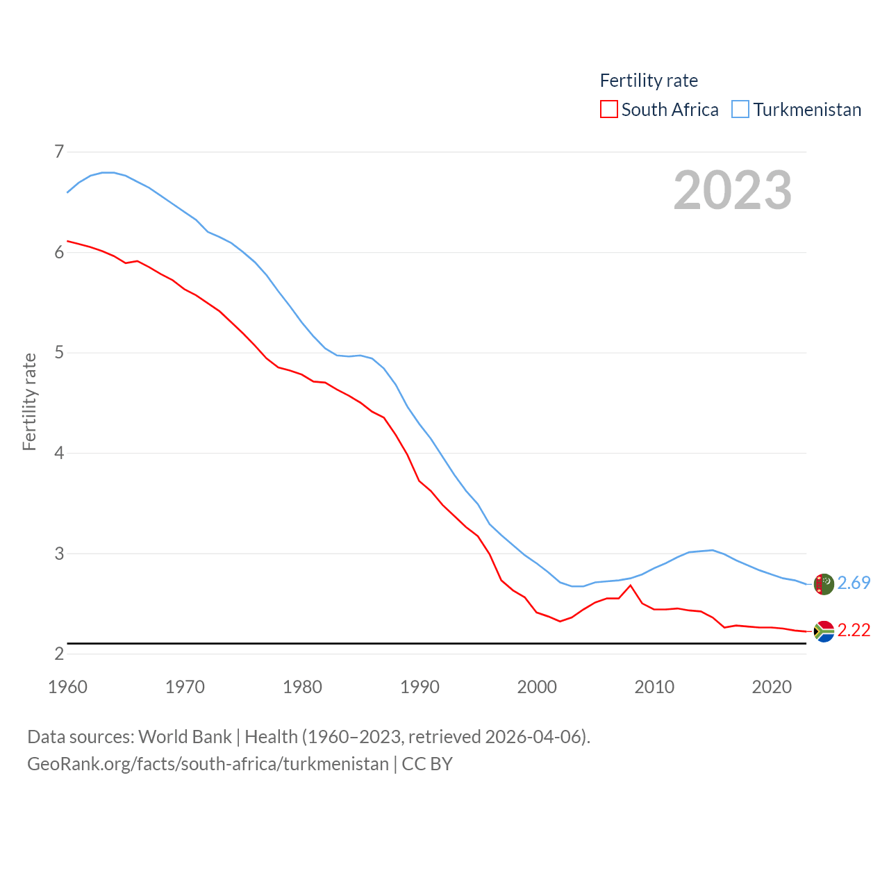 - World Bank | Health (1960–2025, retrieved 2026-04-06)