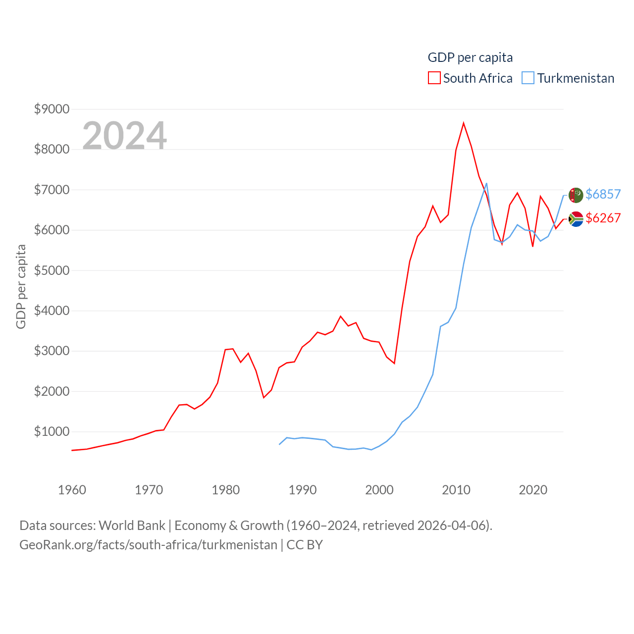 South Africa and Turkmenistan economies compared