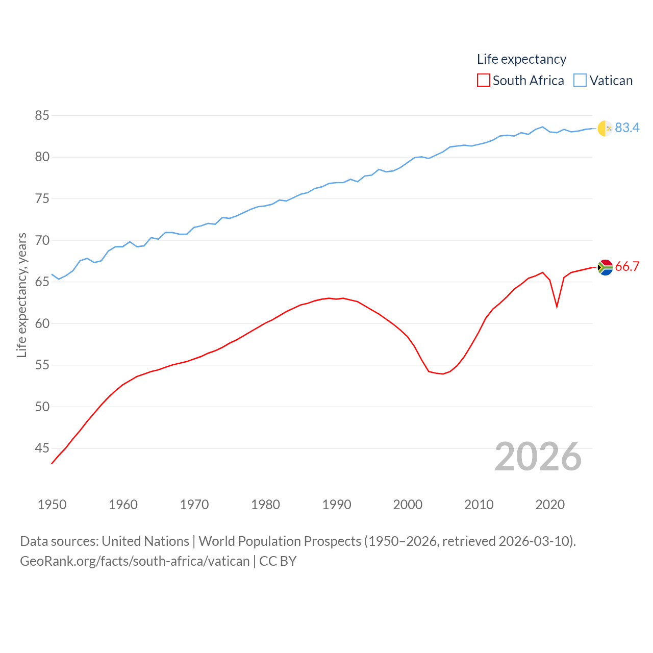 South Africa vs. Vatican life expectancy calculator