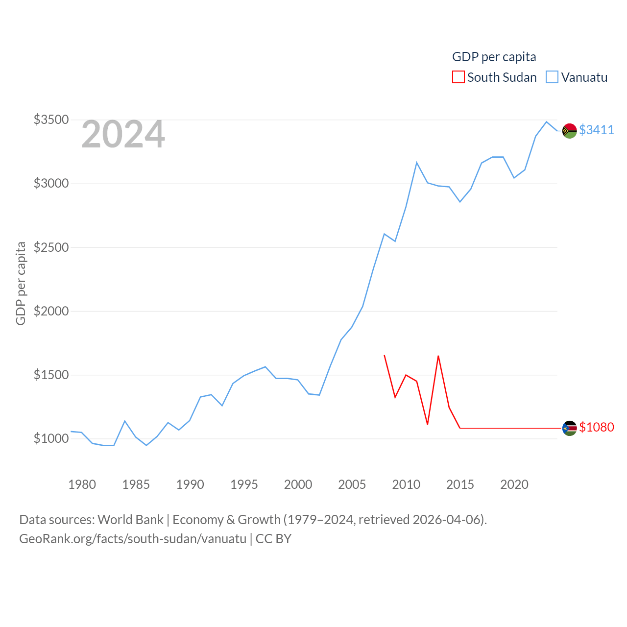 Data sources: World Bank | Economy & Growth (1979–2024, retrieved 2026-04-06).