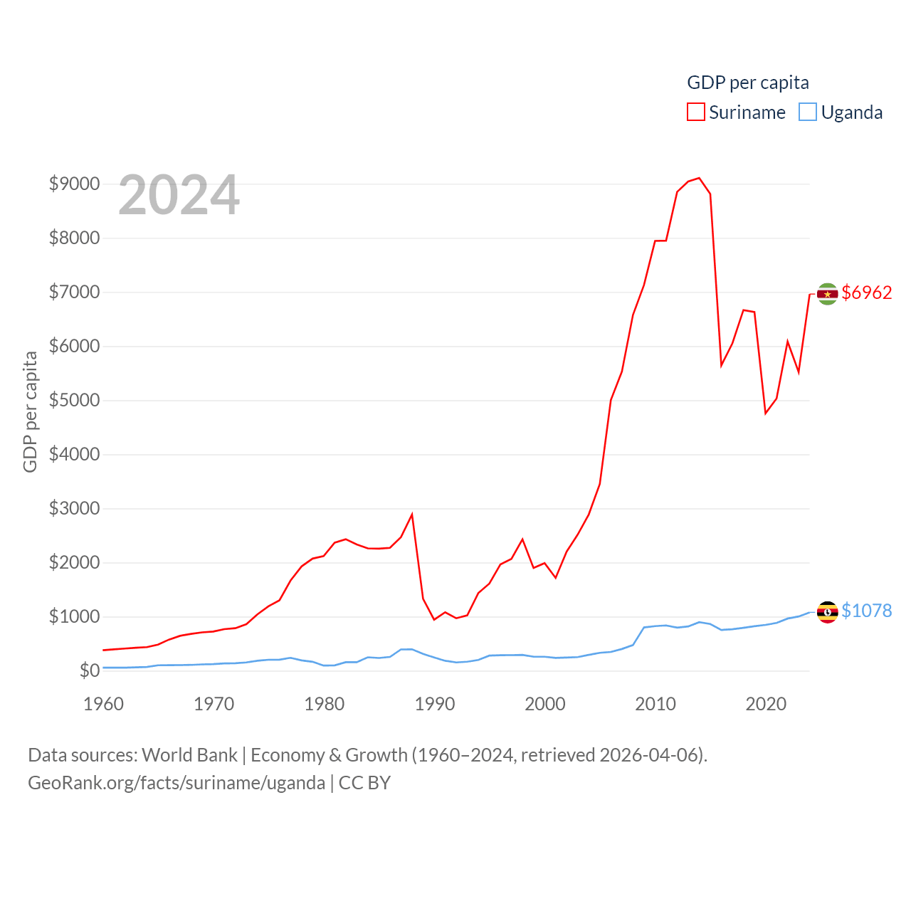 Suriname and Uganda economies compared
