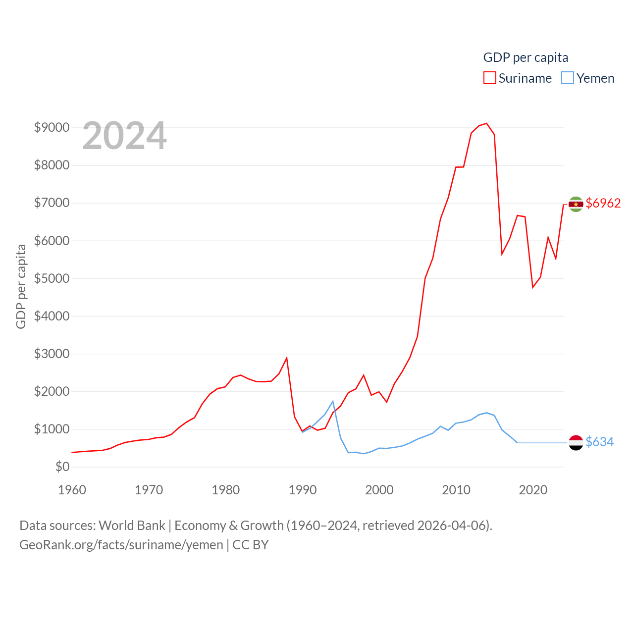 Suriname and Yemen economies compared