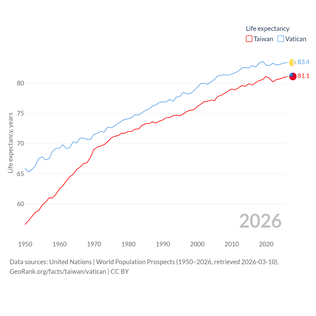 Taiwan vs. Vatican life expectancy calculator
