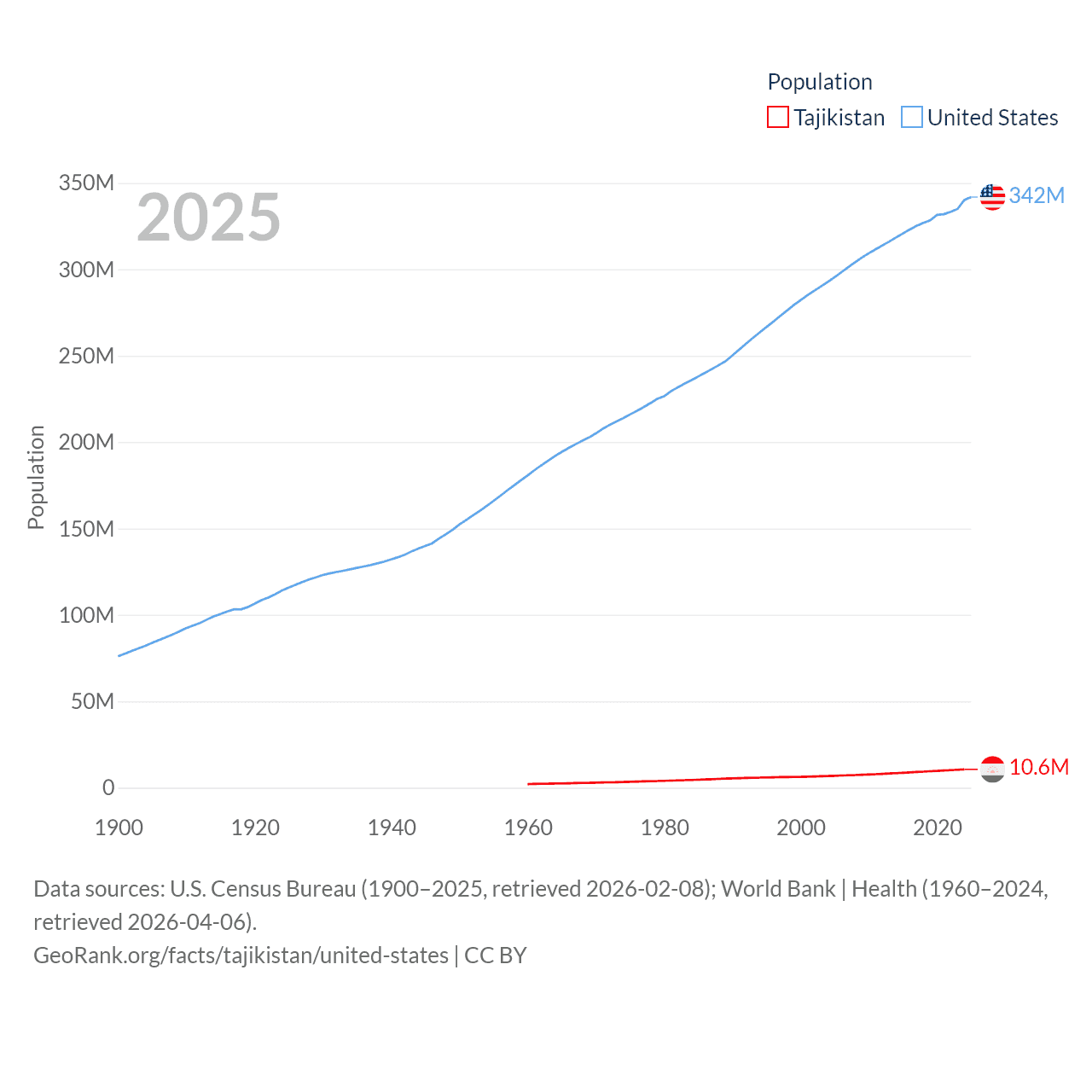 - U.S. Census Bureau (1900–2025, retrieved 2026-02-08)