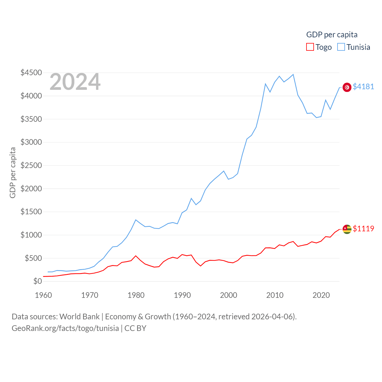 Togo and Tunisia economies compared