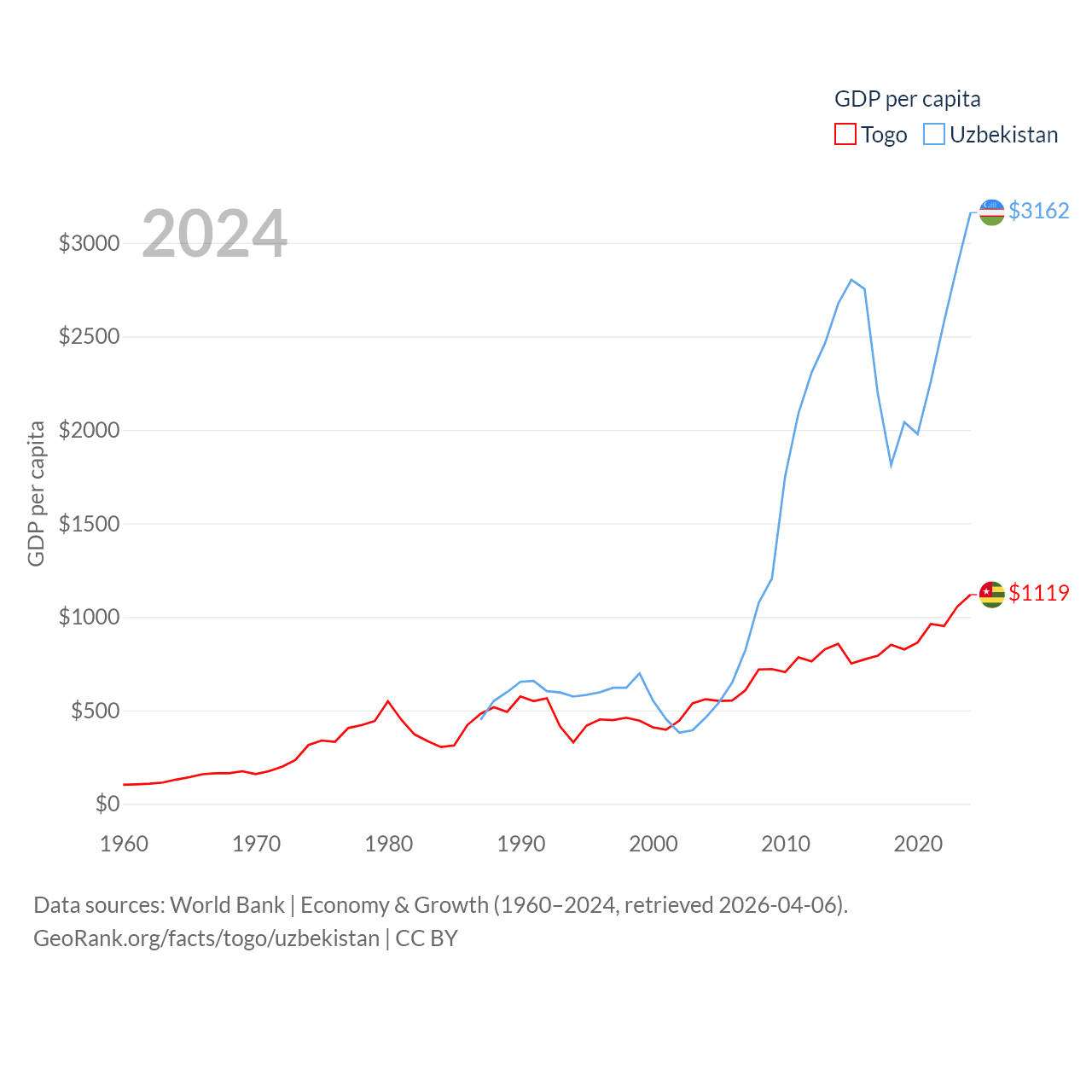 Togo and Uzbekistan economies compared