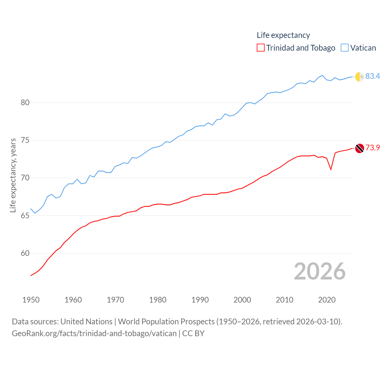 Trinidad and Tobago vs. Vatican life expectancy calculator