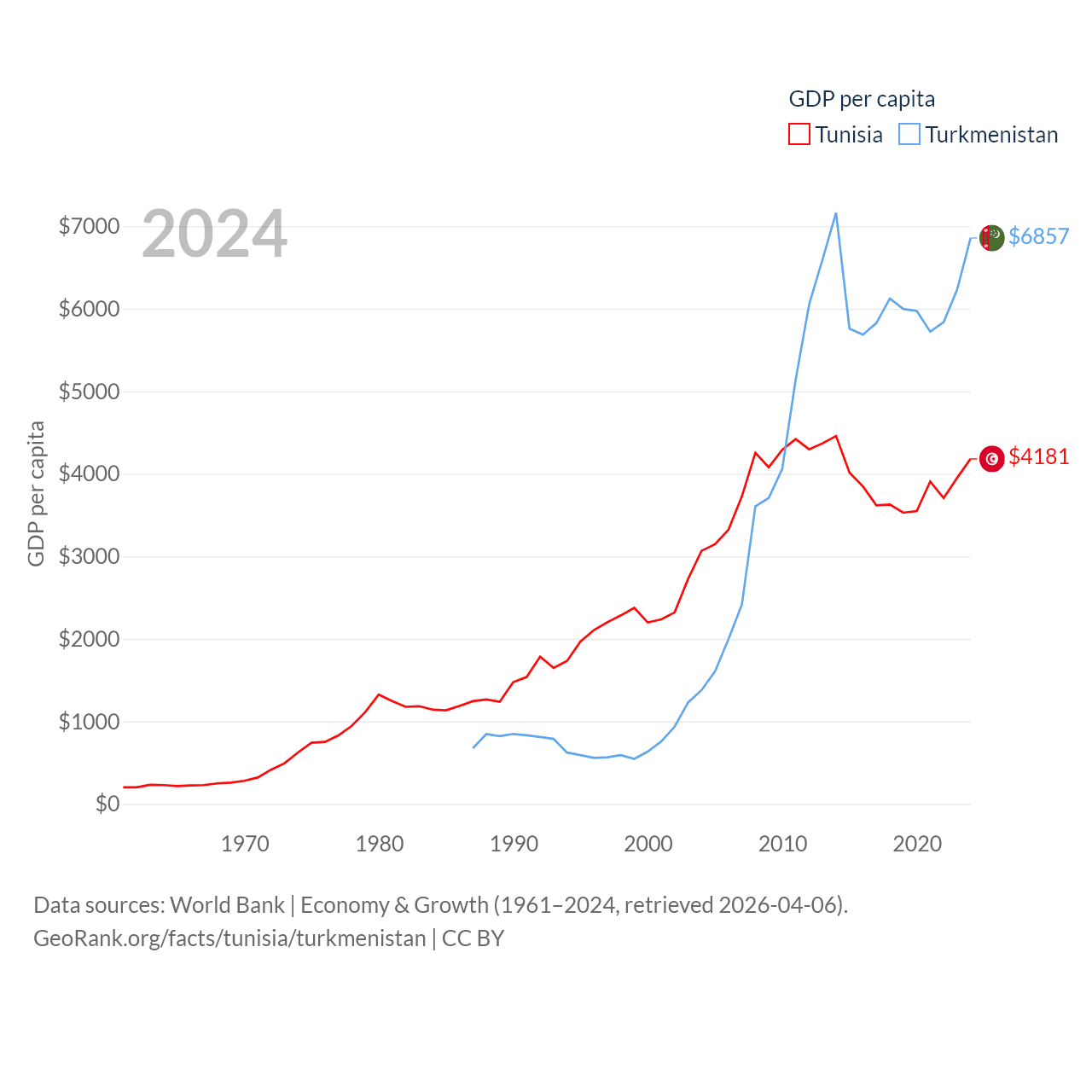 Tunisia and Turkmenistan economies compared