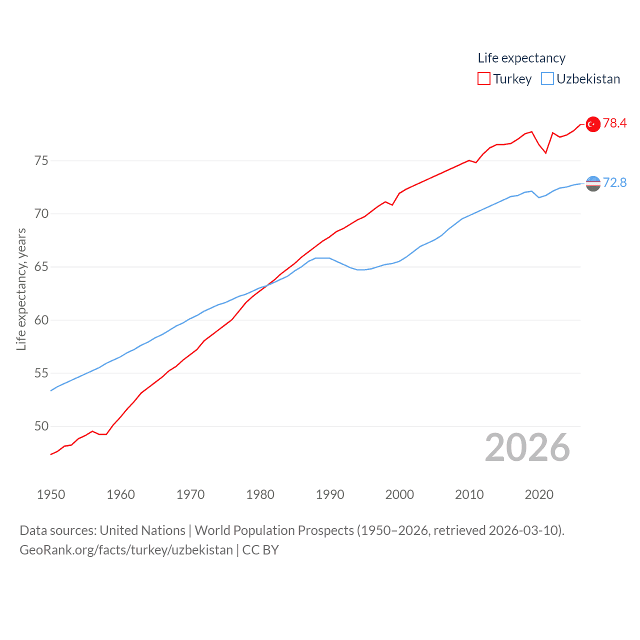- United Nations | World Population Prospects (1950–2026, retrieved 2026-03-10)