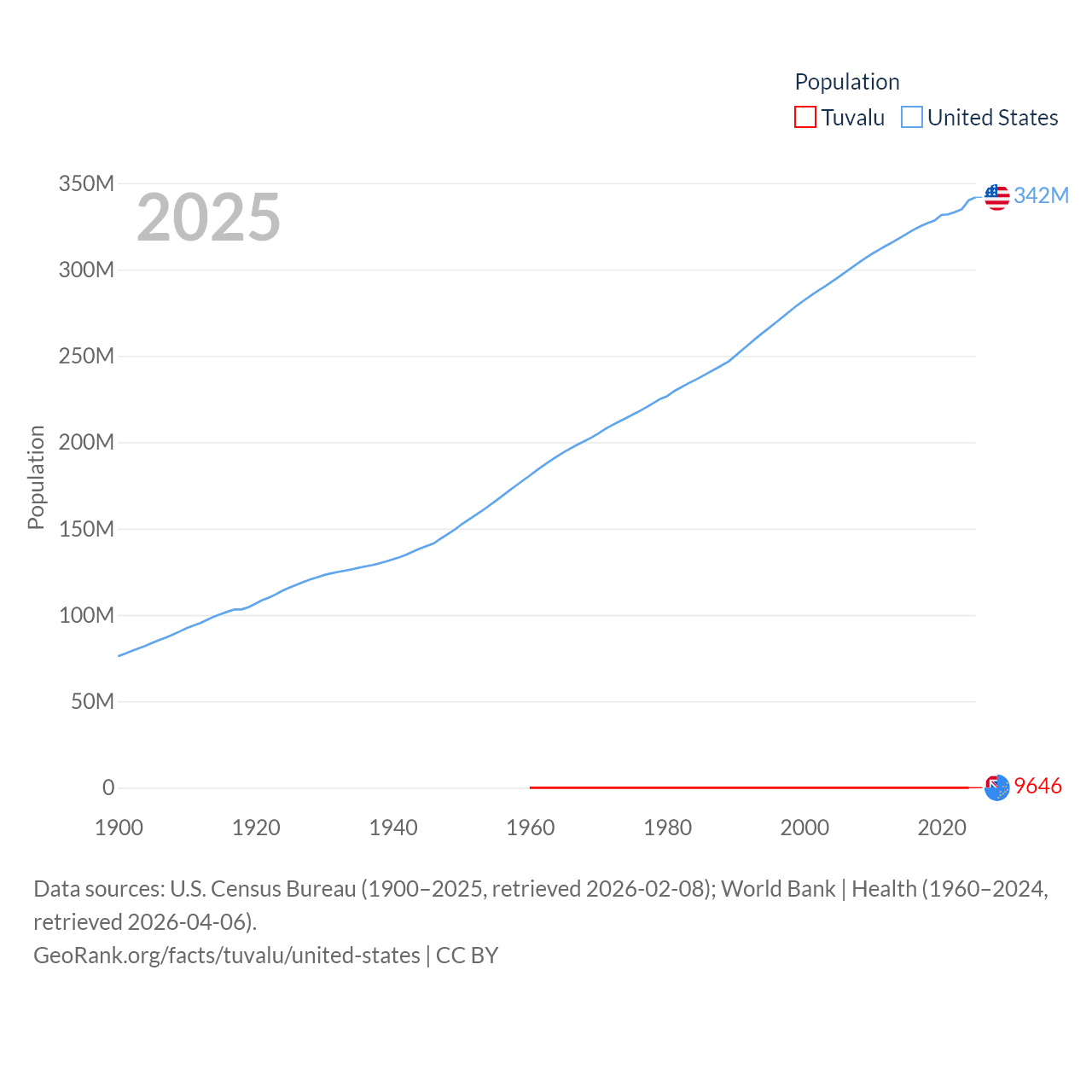 - U.S. Census Bureau (1900–2025, retrieved 2026-02-08)
