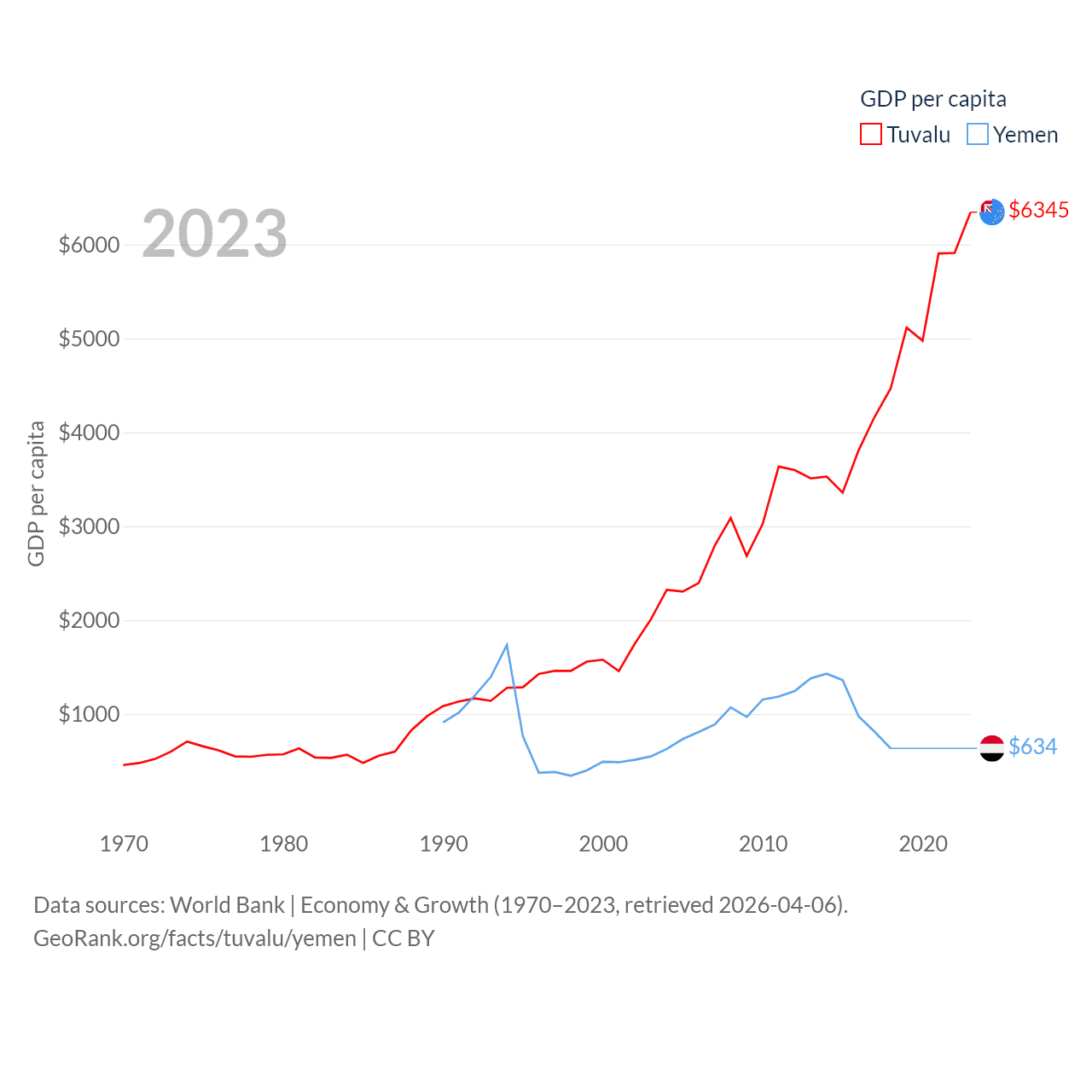 Tuvalu and Yemen economies compared