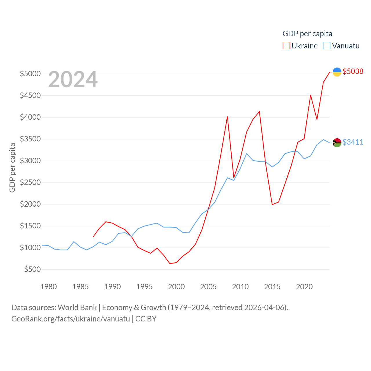 Data sources: World Bank | Economy & Growth (1979–2024, retrieved 2026-04-06).