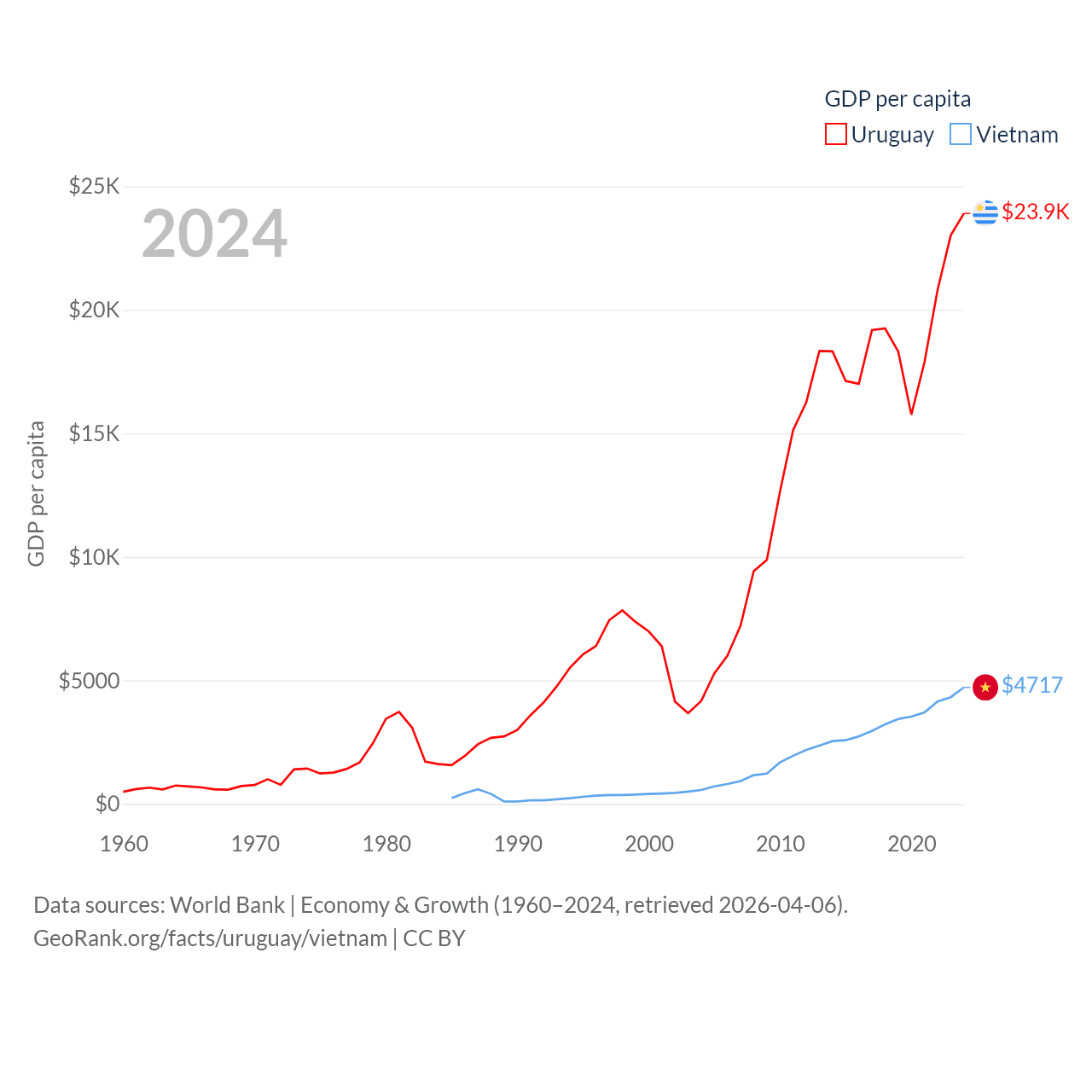 Uruguay and Vietnam economies compared