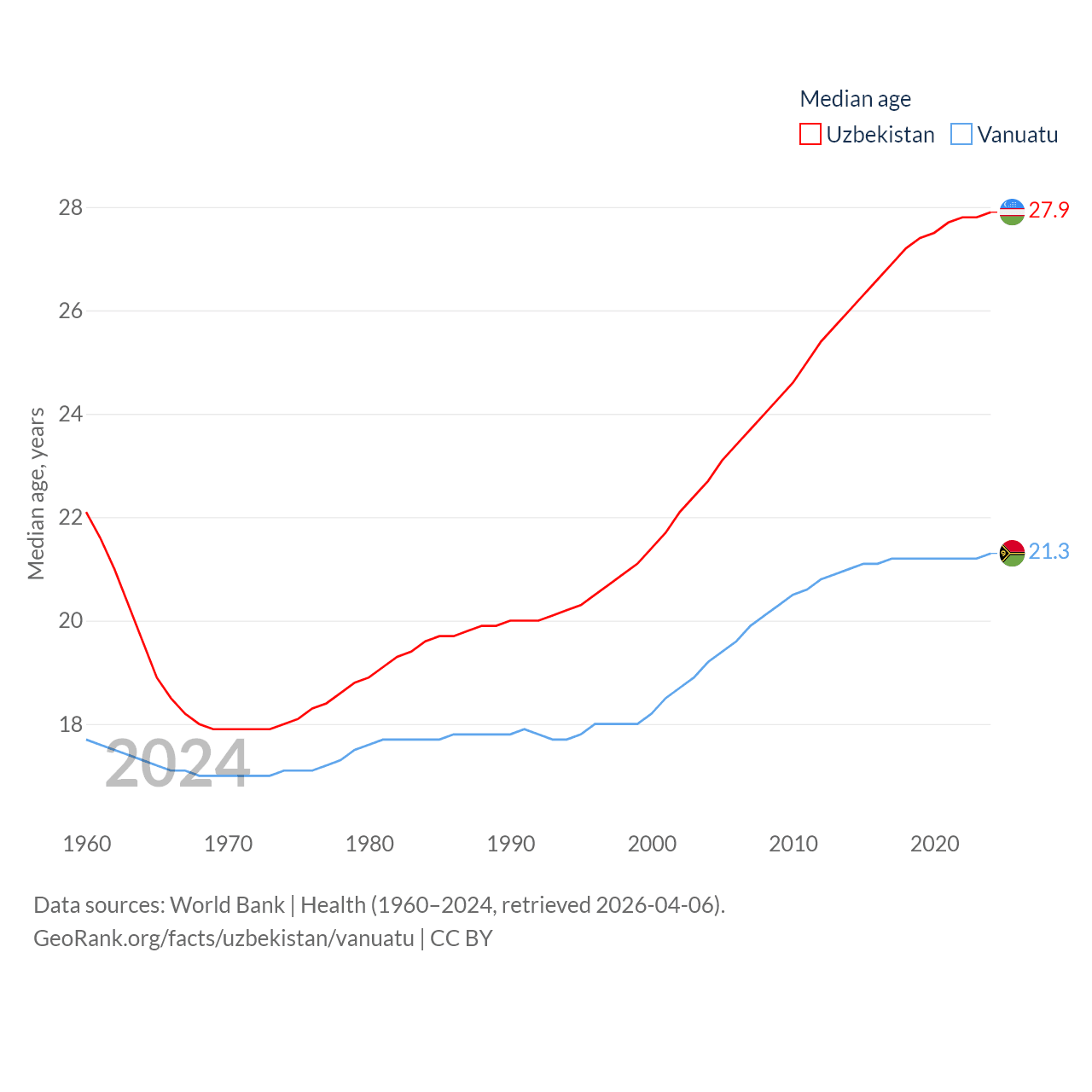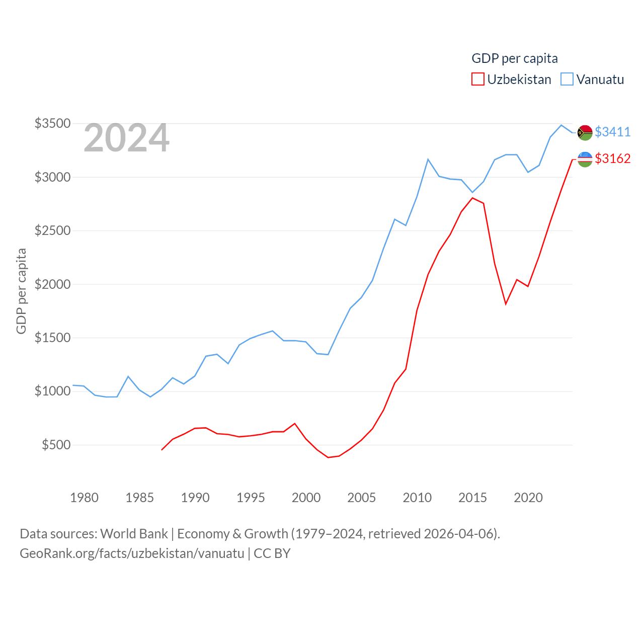 Data sources: World Bank | Economy & Growth (1979–2024, retrieved 2026-04-06).