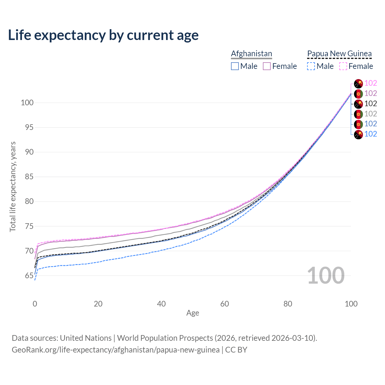 Afghanistan vs Papua New Guinea life expectancy calculator