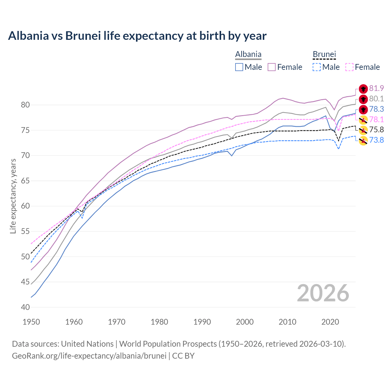 GeoRank.org/life-expectancy/albania/brunei | CC BY