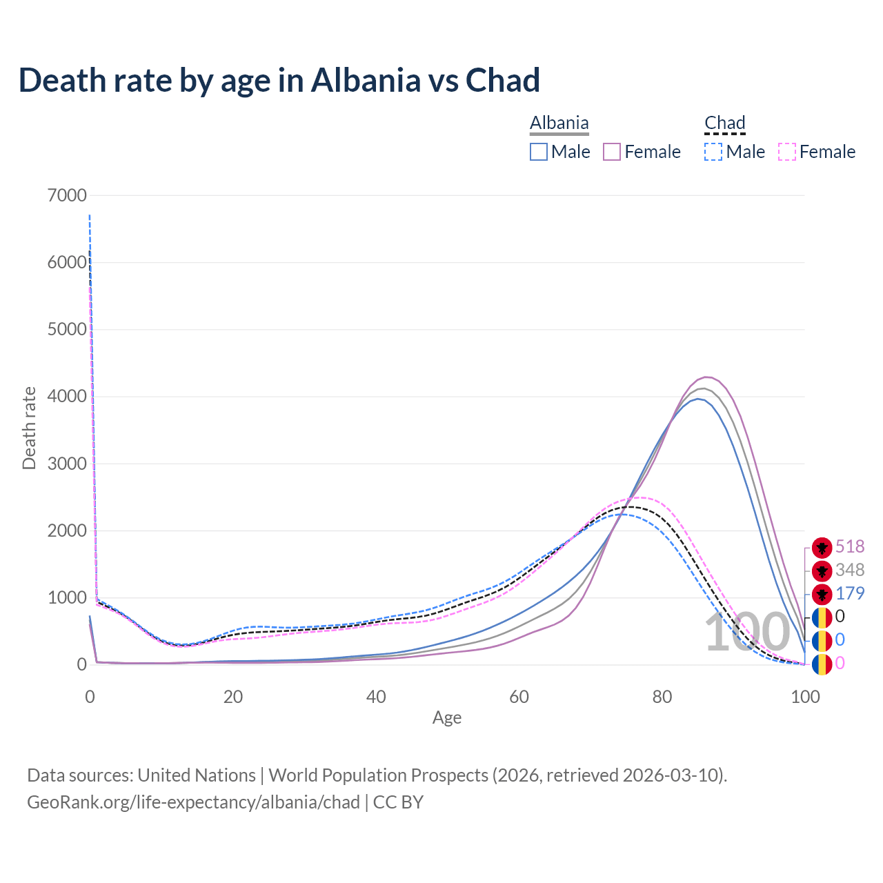 GeoRank.org/life-expectancy/albania/chad | CC BY