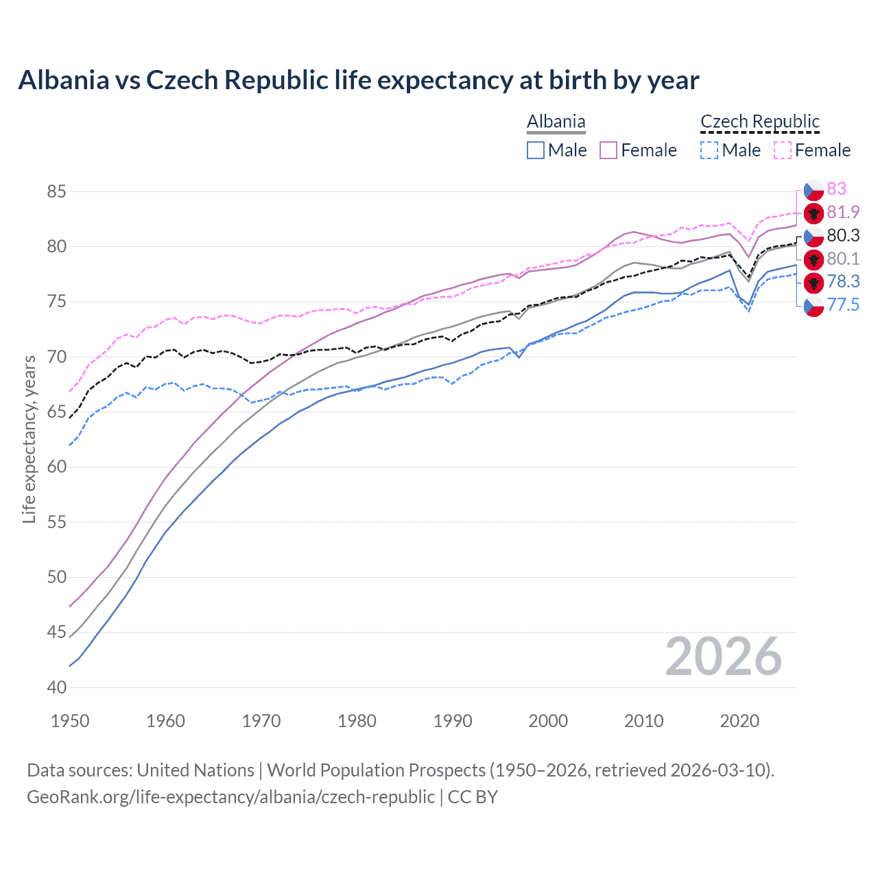 GeoRank.org/life-expectancy/albania/czech-republic | CC BY