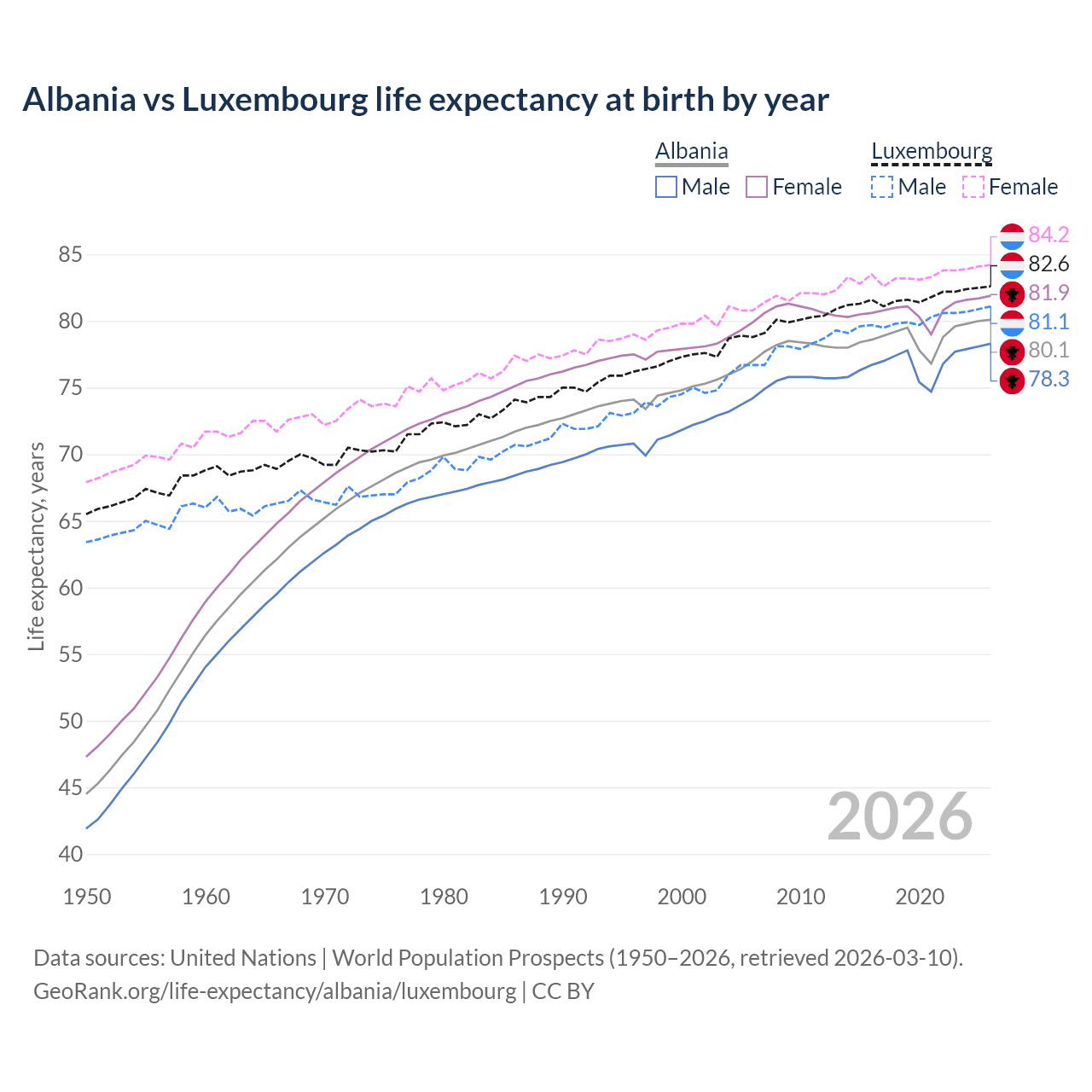 GeoRank.org/life-expectancy/albania/luxembourg | CC BY
