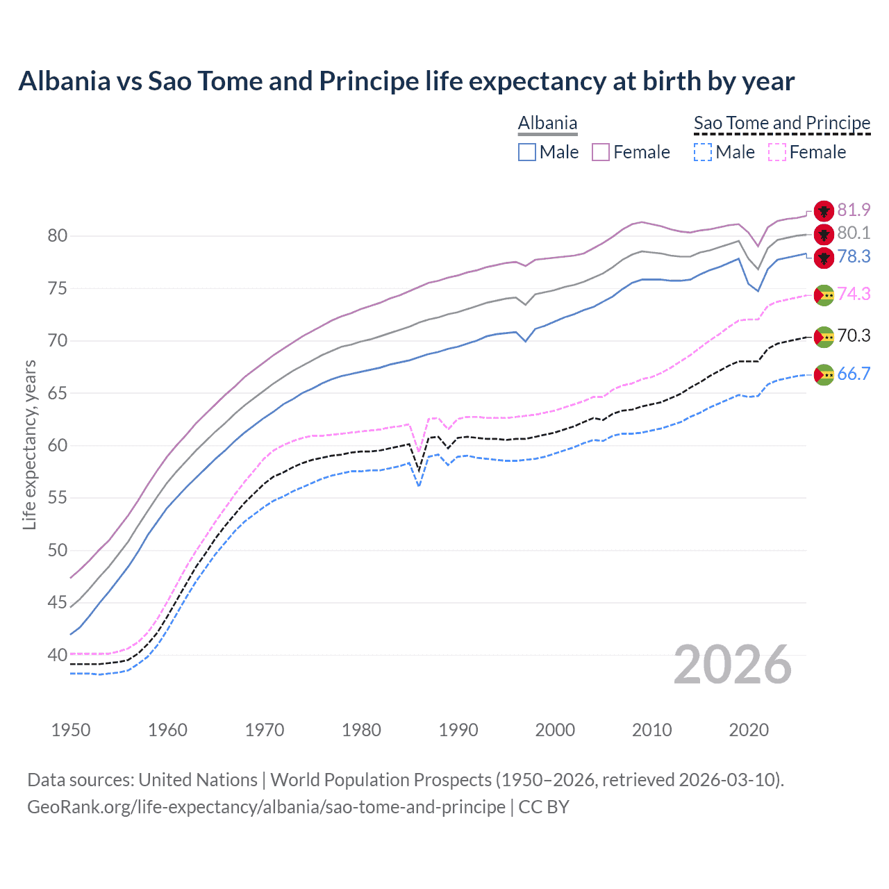 GeoRank.org/life-expectancy/albania/sao-tome-and-principe | CC BY