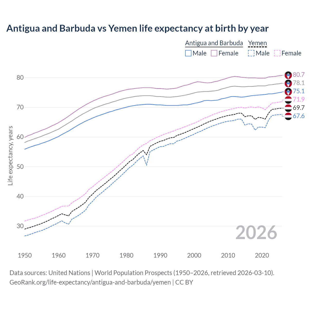 GeoRank.org/life-expectancy/antigua-and-barbuda/yemen | CC BY