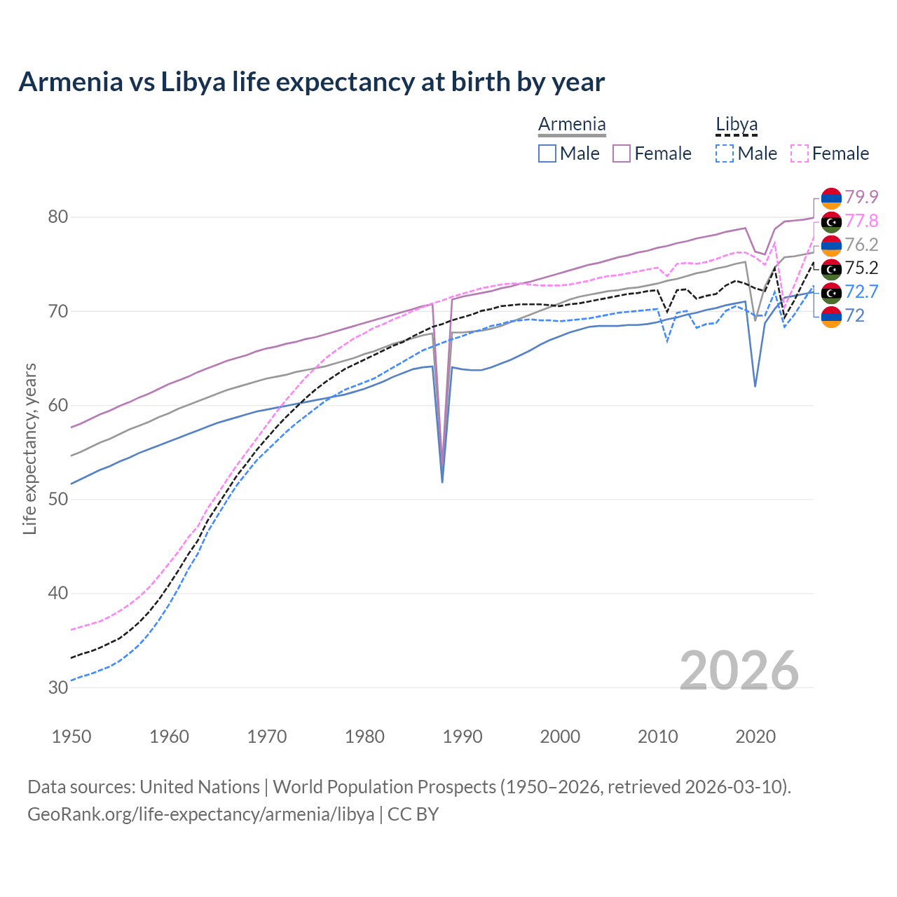 GeoRank.org/life-expectancy/armenia/libya | CC BY