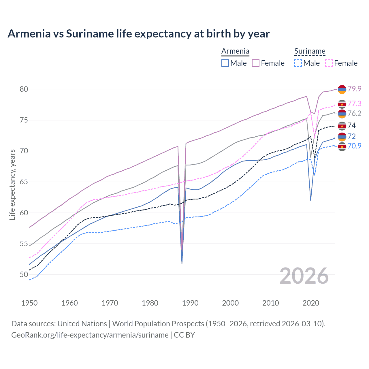 GeoRank.org/life-expectancy/armenia/suriname | CC BY