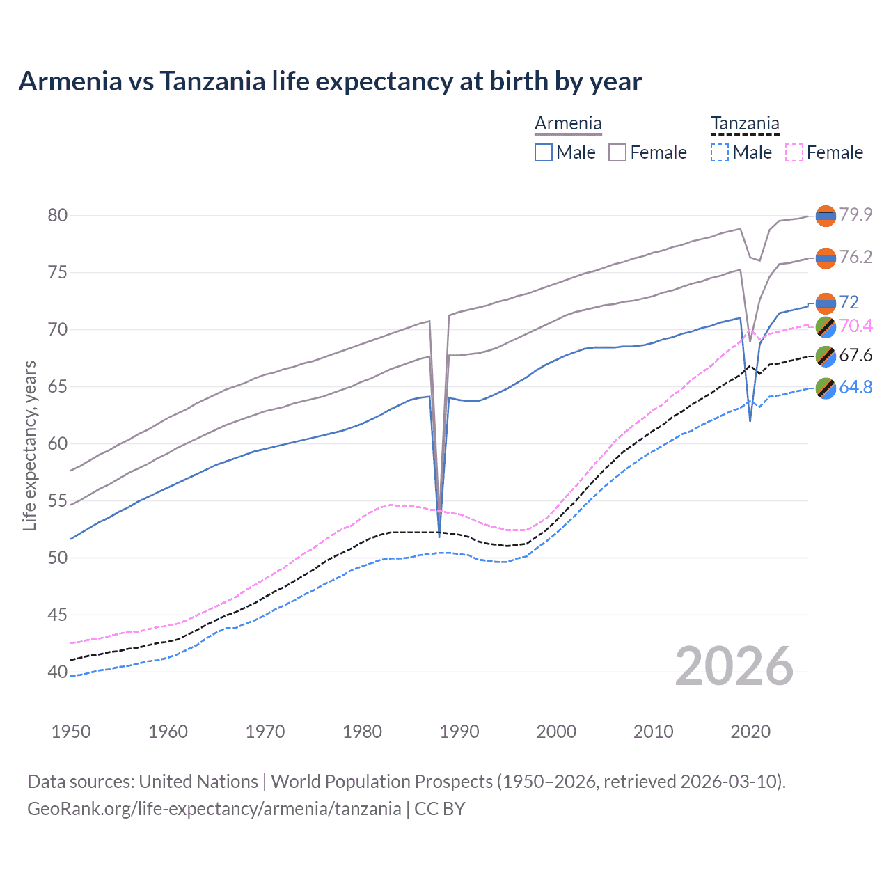 GeoRank.org/life-expectancy/armenia/tanzania | CC BY