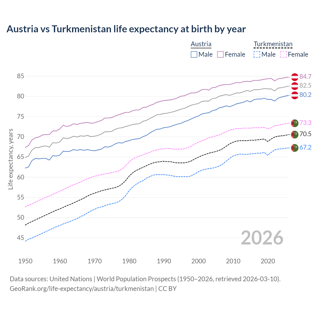 GeoRank.org/life-expectancy/austria/turkmenistan | CC BY