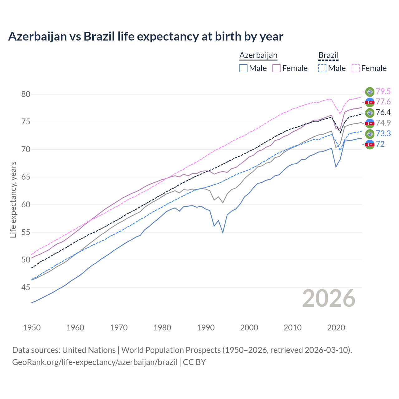 GeoRank.org/life-expectancy/azerbaijan/brazil | CC BY