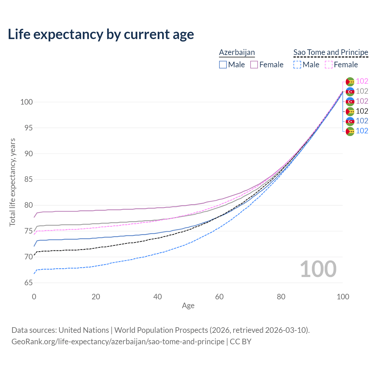 Azerbaijan vs Sao Tome and Principe life expectancy calculator