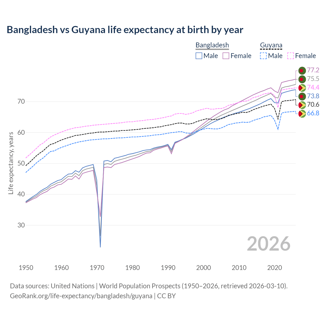 GeoRank.org/life-expectancy/bangladesh/guyana | CC BY