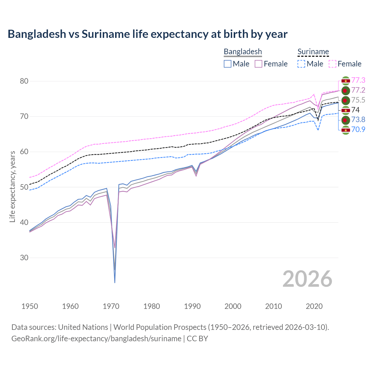 GeoRank.org/life-expectancy/bangladesh/suriname | CC BY