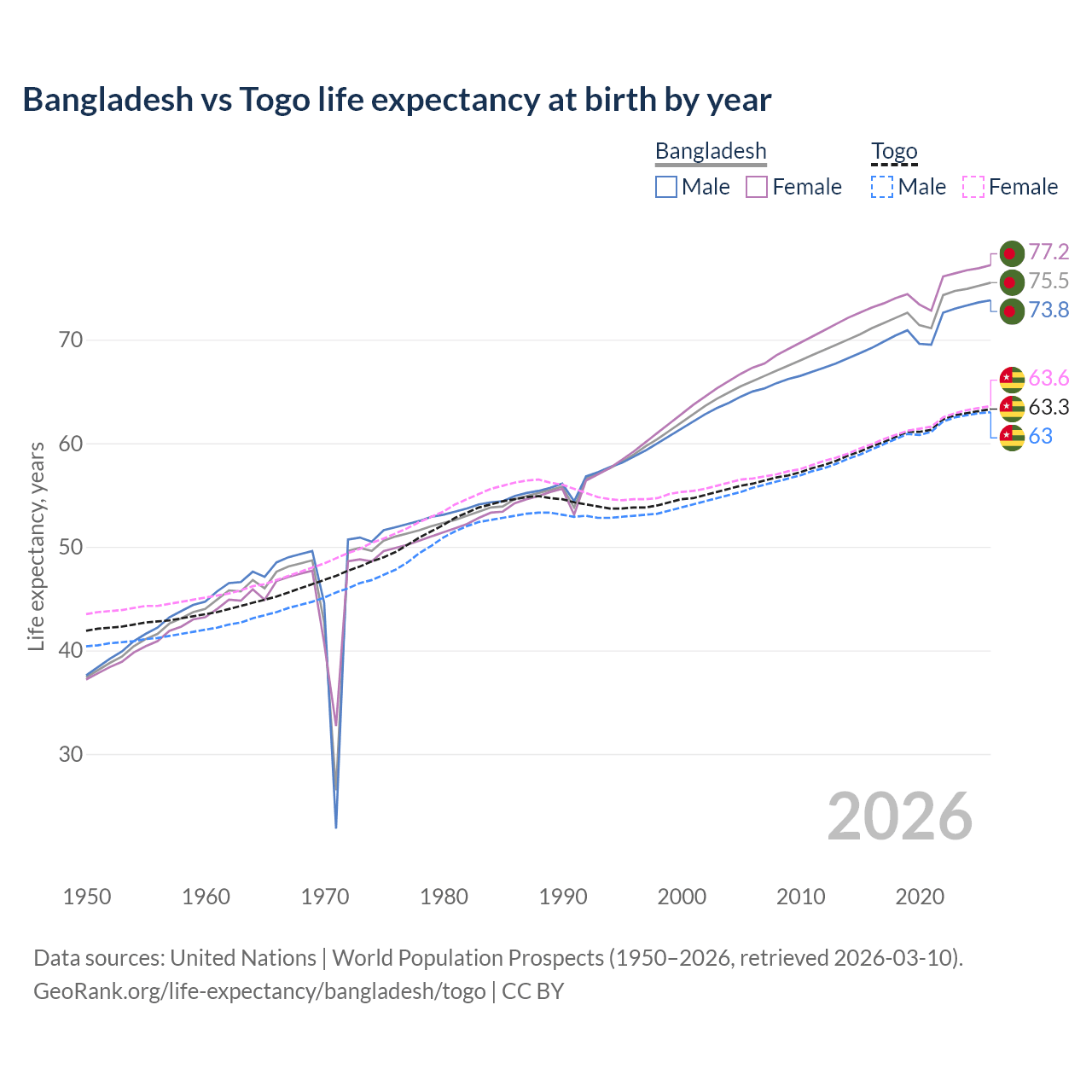 GeoRank.org/life-expectancy/bangladesh/togo | CC BY