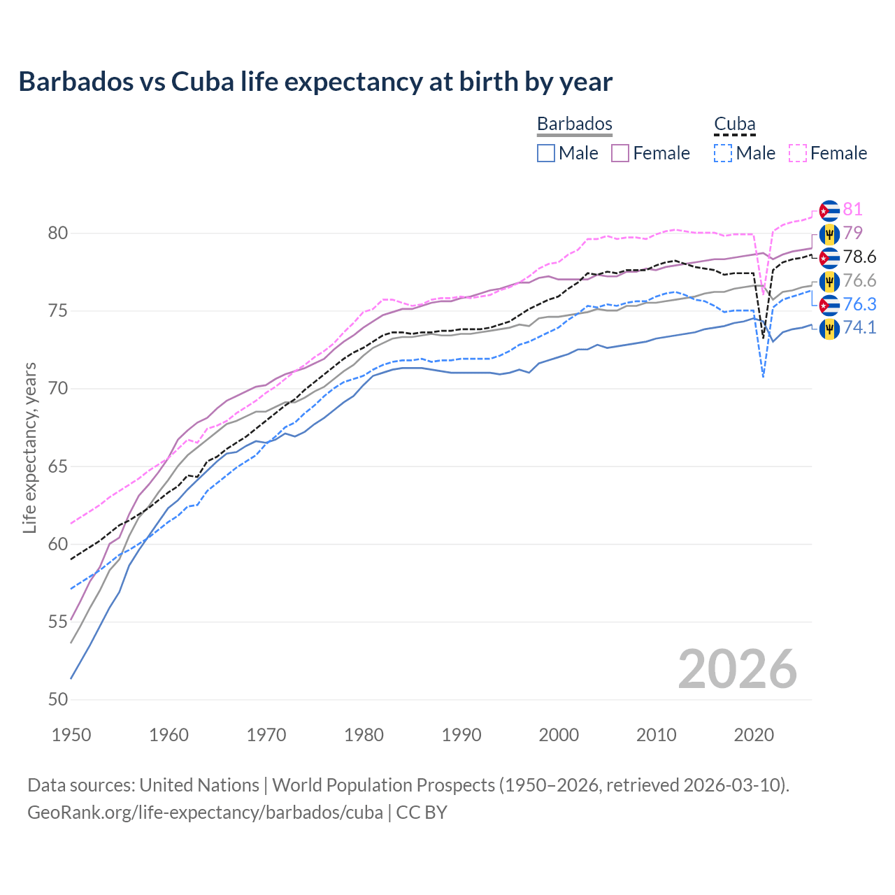 GeoRank.org/life-expectancy/barbados/cuba | CC BY