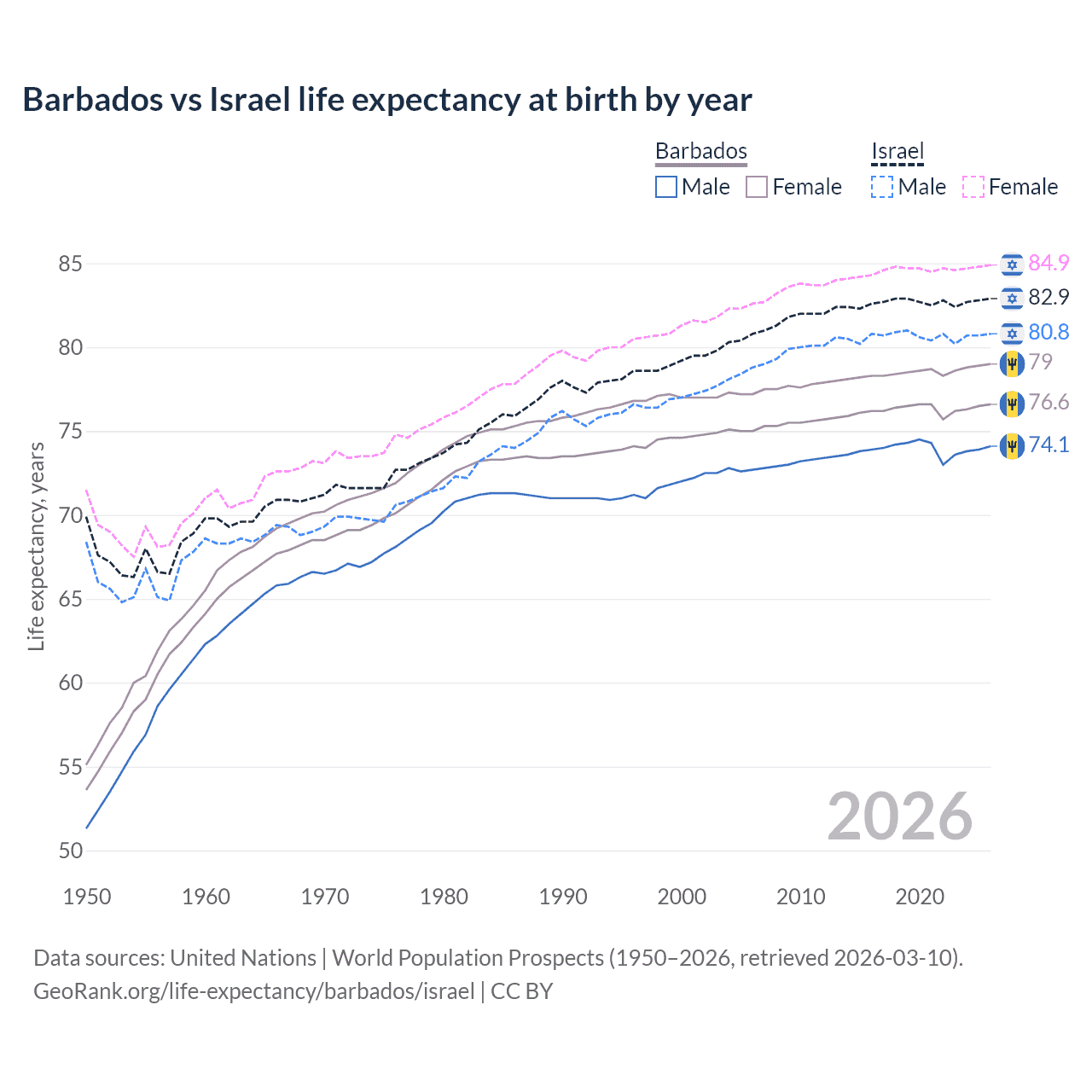 GeoRank.org/life-expectancy/barbados/israel | CC BY