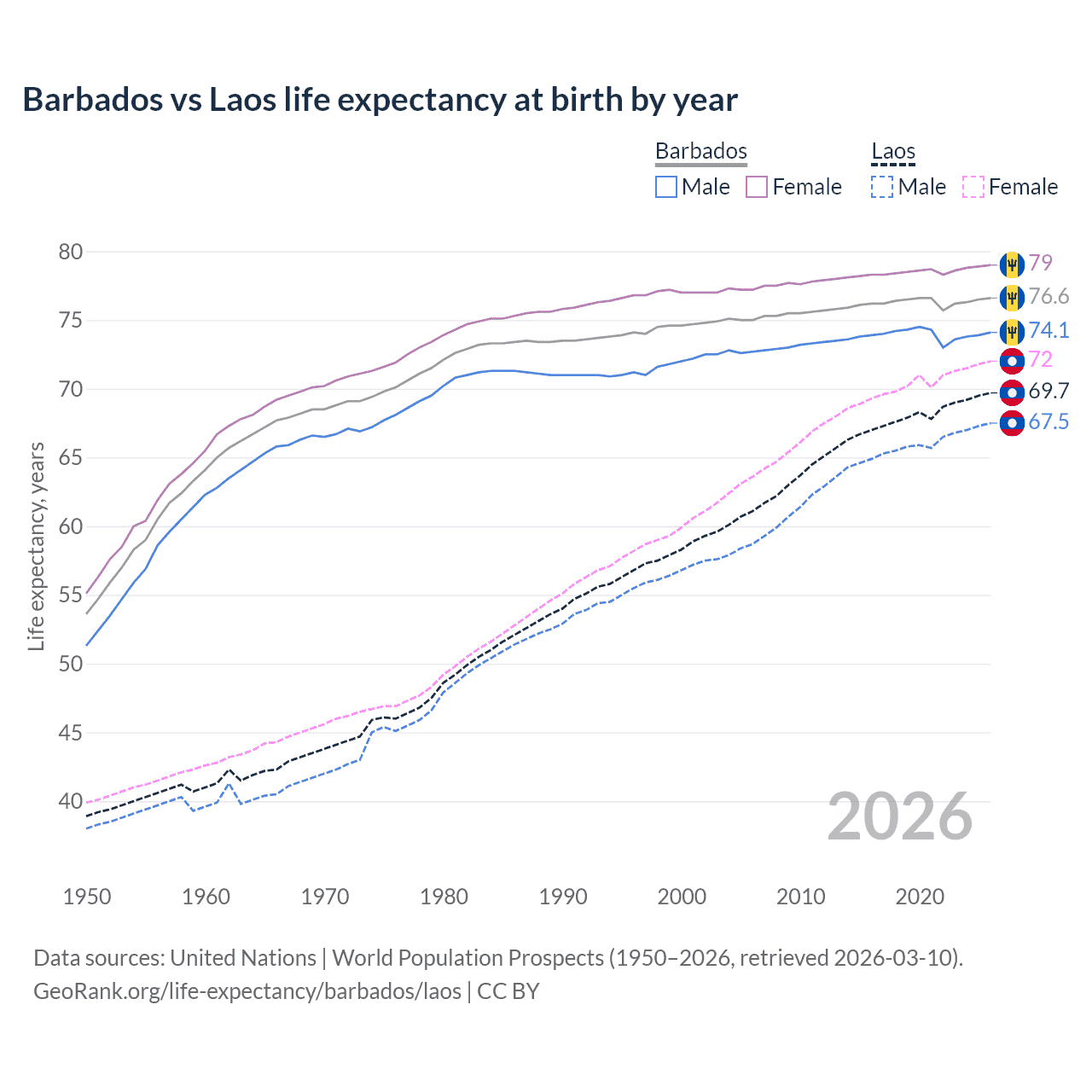 GeoRank.org/life-expectancy/barbados/laos | CC BY