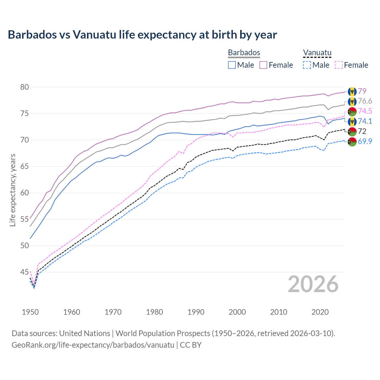 GeoRank.org/life-expectancy/barbados/vanuatu | CC BY