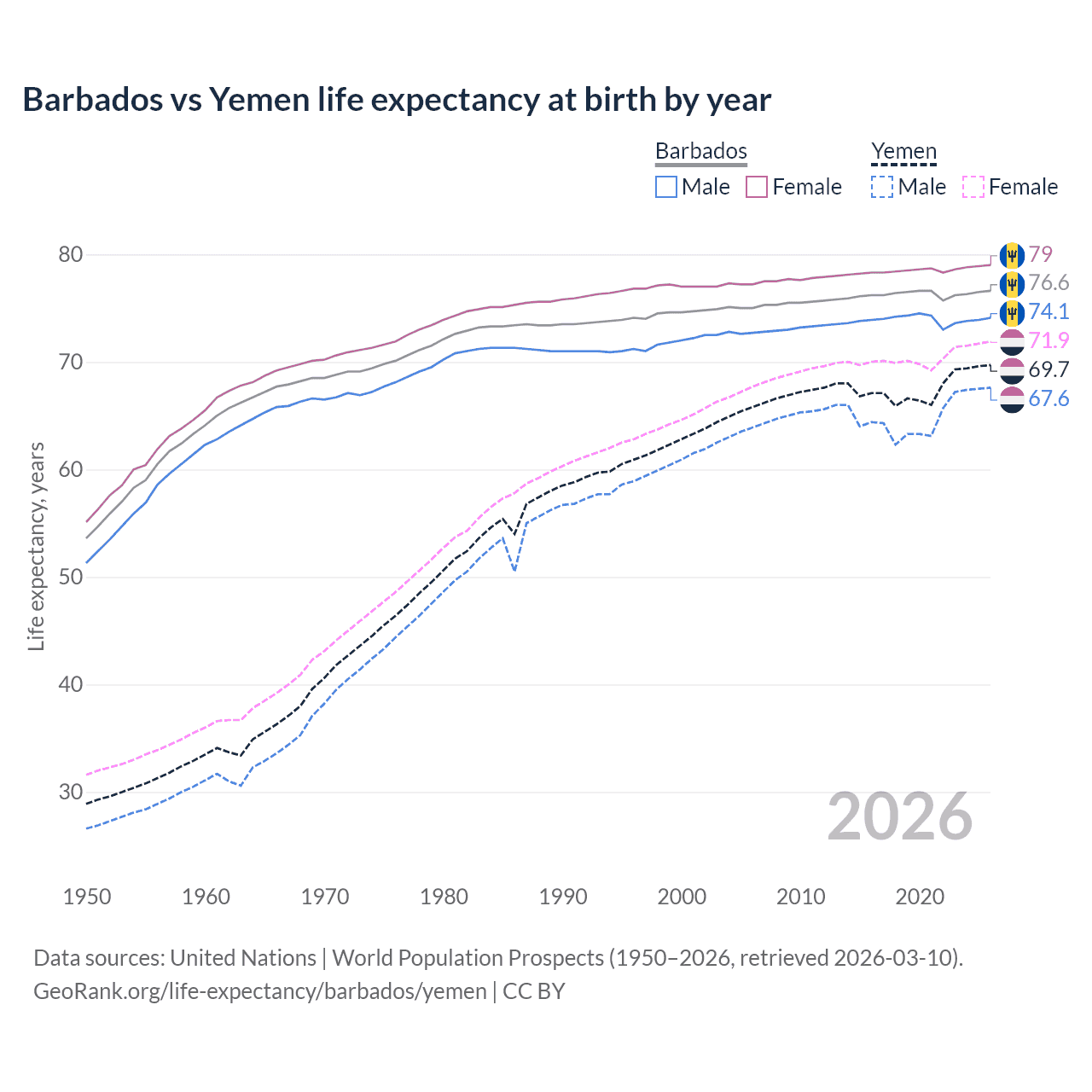 GeoRank.org/life-expectancy/barbados/yemen | CC BY