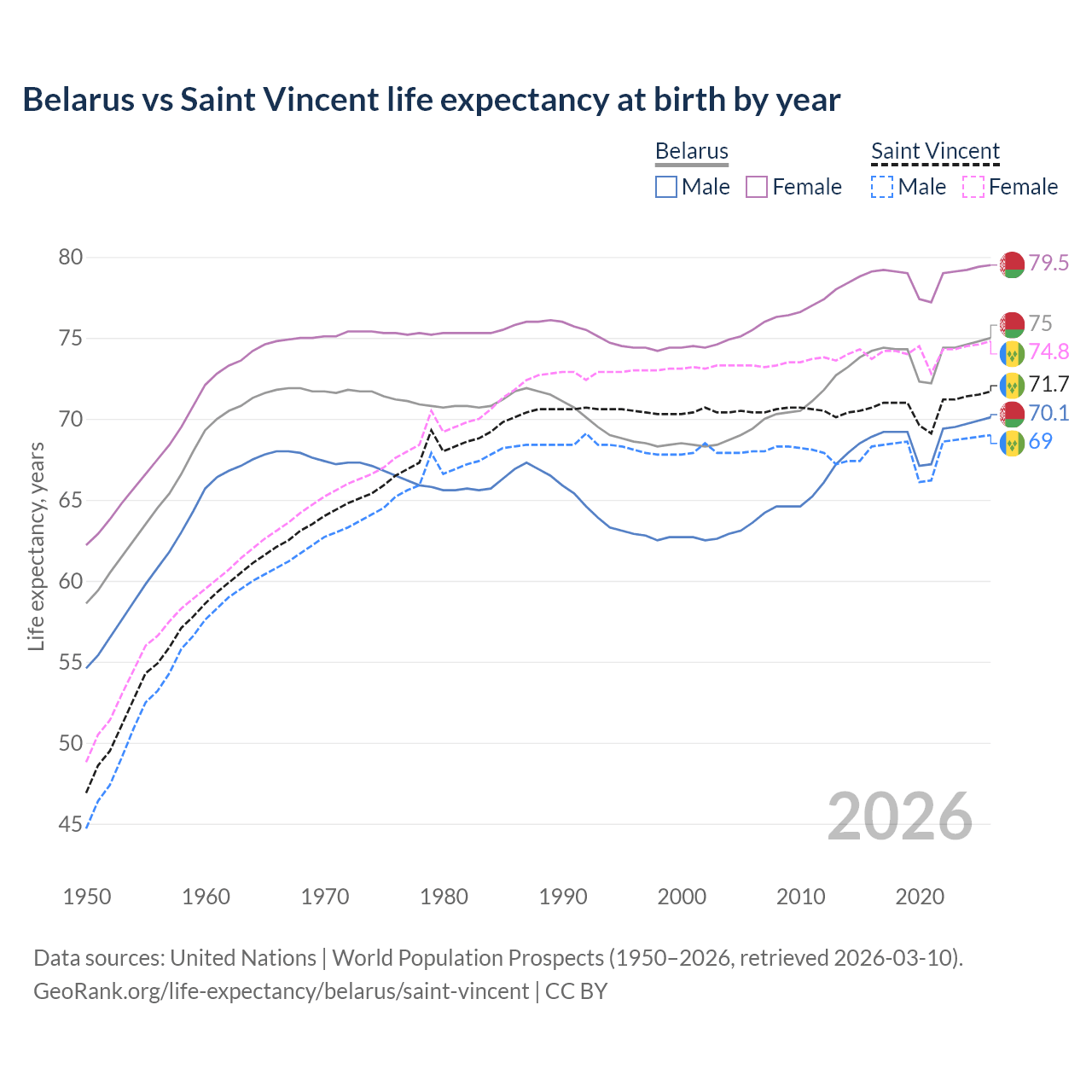 GeoRank.org/life-expectancy/belarus/saint-vincent | CC BY